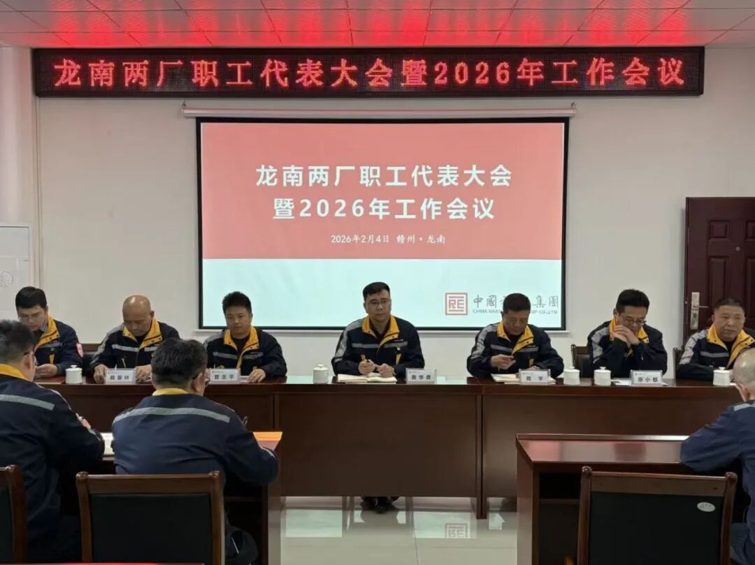 2月4日,赣州稀土龙南冶炼分离有限公司、赣州稀土(龙南)有色金属有限公司(以下简称 “龙南两厂”)召开职工代表大会暨2026年工作会。公司党委书记、董事长黄华勇出席会议并讲话,“龙南有色冶炼联合经营班子”执行董事周平作2026年工作安排,常务副总经理廖小都传达学习集团公司一届六次职代会暨2026年工作会、江西稀土一届四次职代会暨 2026 年工作会会议精神。